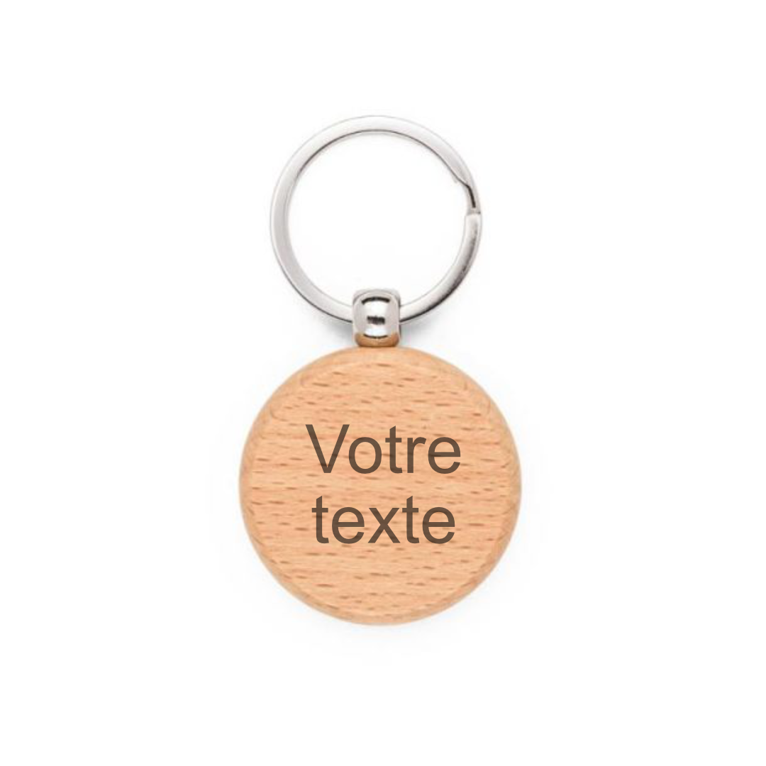 - Ce porte-clés en bois rond séduit par sa simplicité et son design chaleureux.